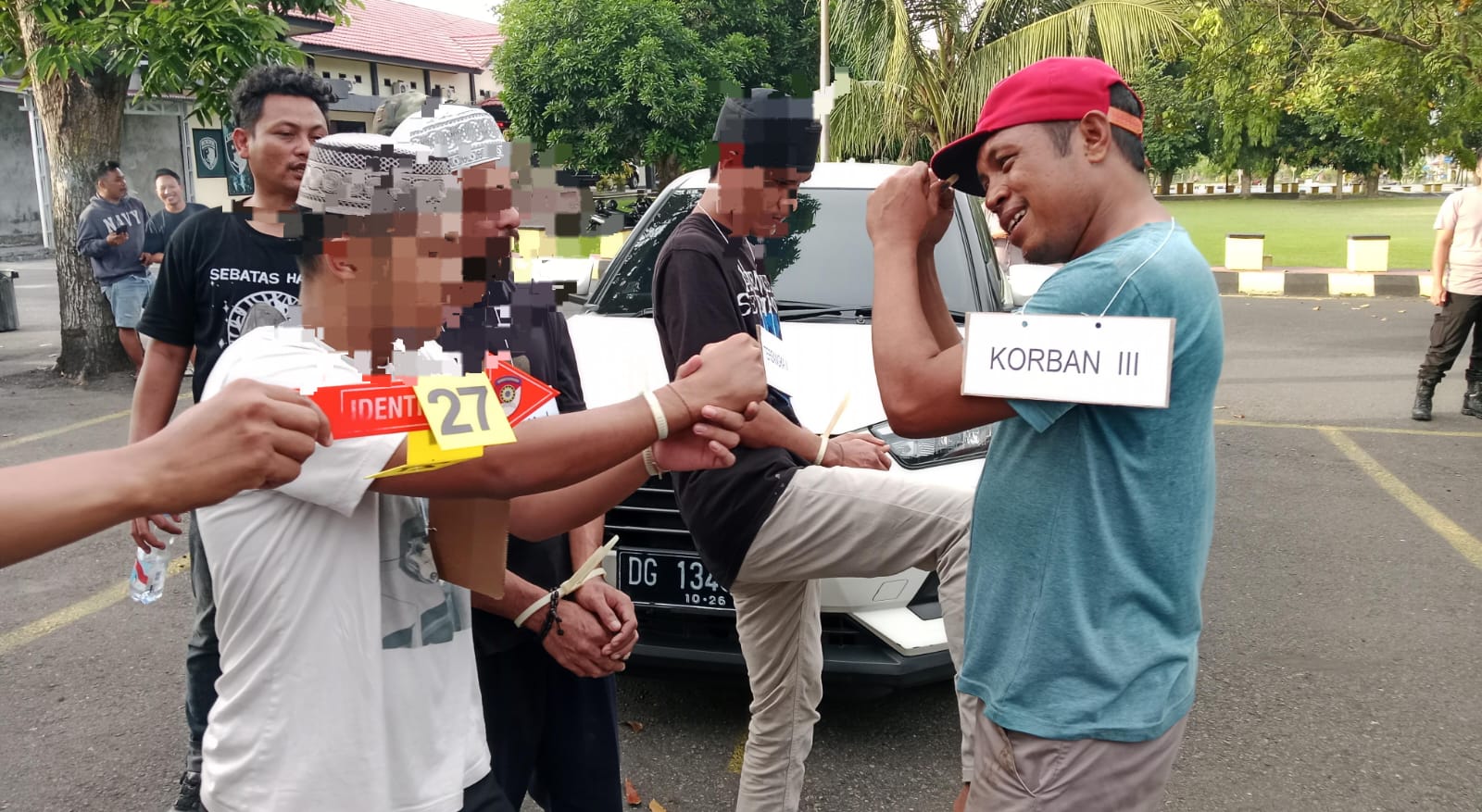 marahaipost.com|| Polres Halmahera Utara, Maluku Utara bersama Jaksa Penuntut Umum, (JPU) Kejaksaan Negeri, (Kejari) Halmahera Utara menggelar rekonstruksi kasus dugaan tindak pidana pengeroyokan terhadap anggota polisi dengan menghadirkan 6 orang tersangka masing-masing MRW, SSF, MB, AZS, FAW, dan AY.