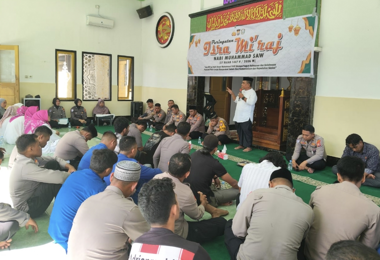 Marahaipost.com || Polres Halmahera Utara menggelar Peringatan Isra Mi’raj Nabi Muhammad SAW 1447 H / 2026 M) di masjid At Tauhid, Kamis tanggal 15 Januari 2026, dengan Tema “Isra Mi’raj Nabi Besar Muhammad SAW Memperteguh Keimanan dan Ketakwaan Personil Polri Untuk Masyarakat Dalam Aksi Kemanusian dan Kepedulian Sosial.