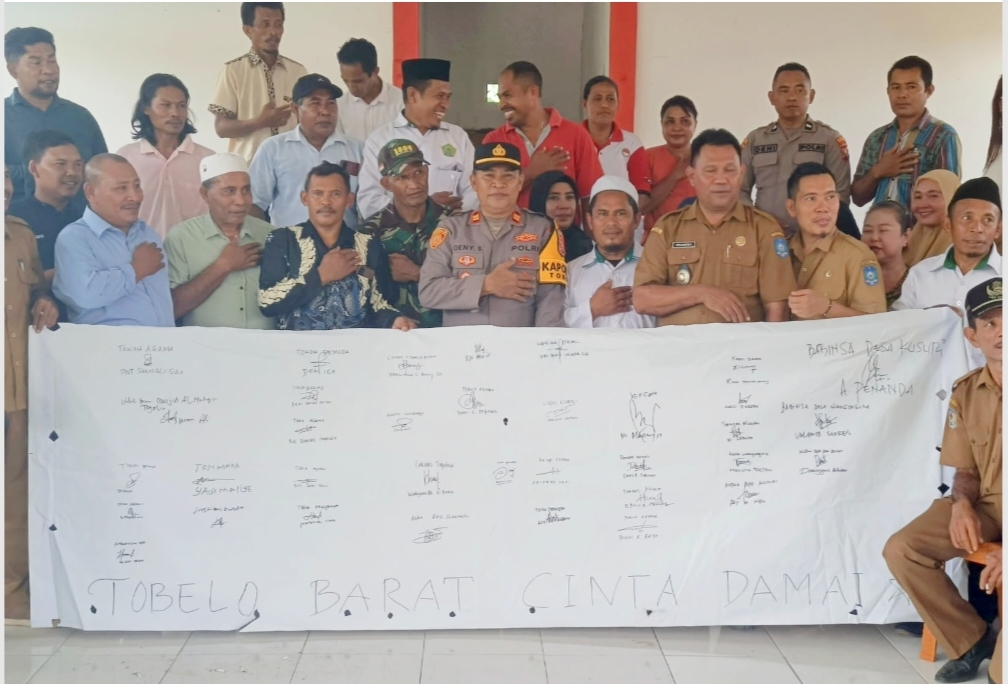 Marahaipost. com || Polsek Tobelo Selatan (Tobsel) bersama Forkopimca Tobelo Barat menggagas kegiatan Deklarasi Cinta Damai dalam rangka menggalang Solidaritas Antar Umat Beragama bertempat di Gedung Pertemuan Desa Kusuri Kecamatan Tobelo Barat Kabupaten Halmahera Utara, Selasa (07/04/2026). Sebagai langkah komitmen bersama menjaga keamanan dan ketertiban bersama masyarakat.