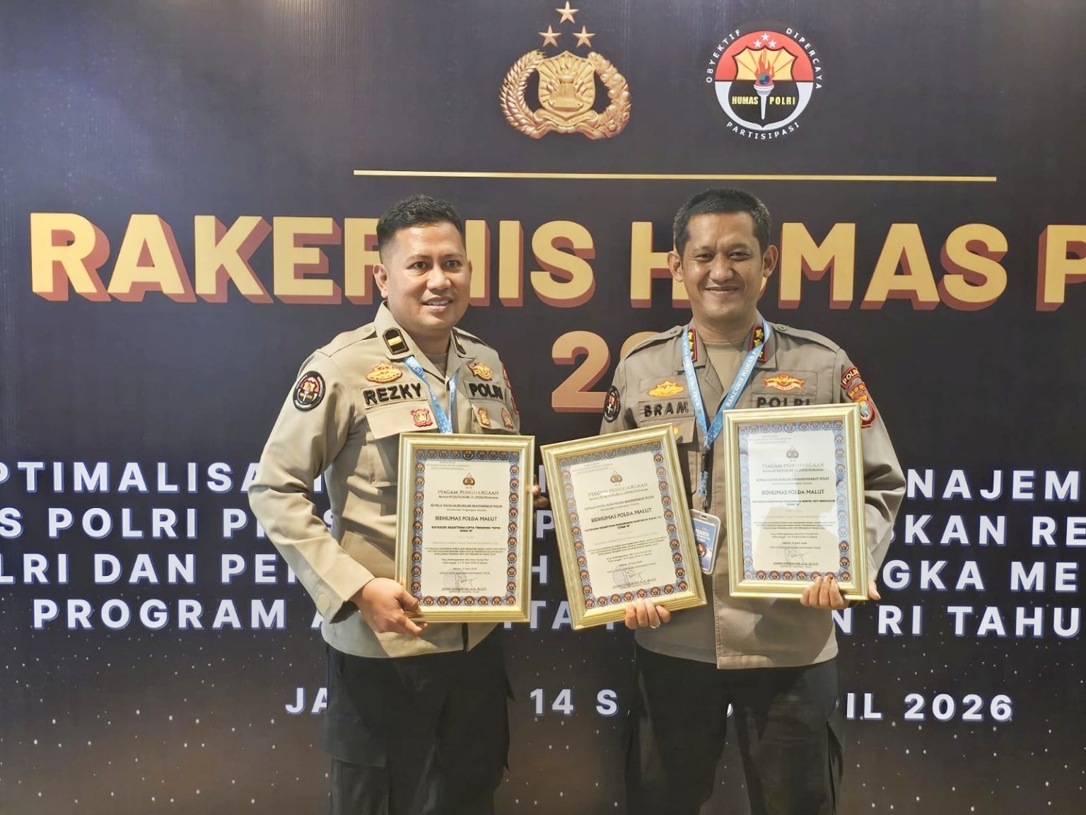 Bidhumas Polda Malut Raih Tiga Penghargaan Nasional dalam Rakernis Humas Polri 2026