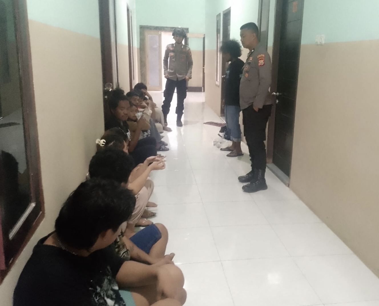 Dijelaskan Kapolsek, anggotanya juga menggiring lima orang lelaki dan tiga orang perempuan di dalam kamar penginapan tersebut yang diduga melakukan ”pesta lem” secara bersama-sama. Masing-masing berinisial MI (22) warga Desa Gosoma. MS (19) warga Desa WKO. ST (18), warga Desa Raja Morotai. WA (24 ) warga Desa WKO, YA (19) warga kampung baru Aspol Gamsungi, KlL (21) warga Desa Wari Ino, SH (19) warga Tilei Mototai dan AE (19 warga Desa Tolonuo.